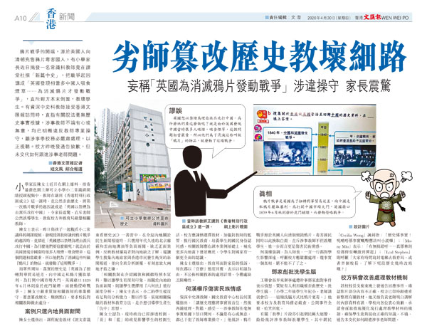 另外,前特首梁振英昨日在其個人facebook發表帖文,表示歡迎教育局取消「鴉片煙老師」的註冊,並質問對方是不是教協會員,要求葉建源回應。
