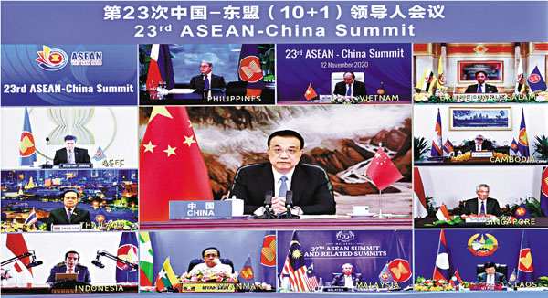 李克強表示,在共同抗擊疫情過程中,中國同東盟國家守望相助,共克時艱。當前疫情仍在全球肆虐,世界經濟復甦艱難曲折,保護主義、單邊主義上升。令人鼓舞的是,東亞地區疫情防控形勢總體趨穩向好,中國—東盟貿易投資逆勢增長,東盟已成為中國第一大貿易夥伴。中國將貫徹新發展理念,推動高質量發展,加快構建新發展格局,在堅持擴大內需的同時,推進高水平對外開放,這將有利於中國和東盟兩大市場更好對接,助力區域經濟復甦和可持續發展。