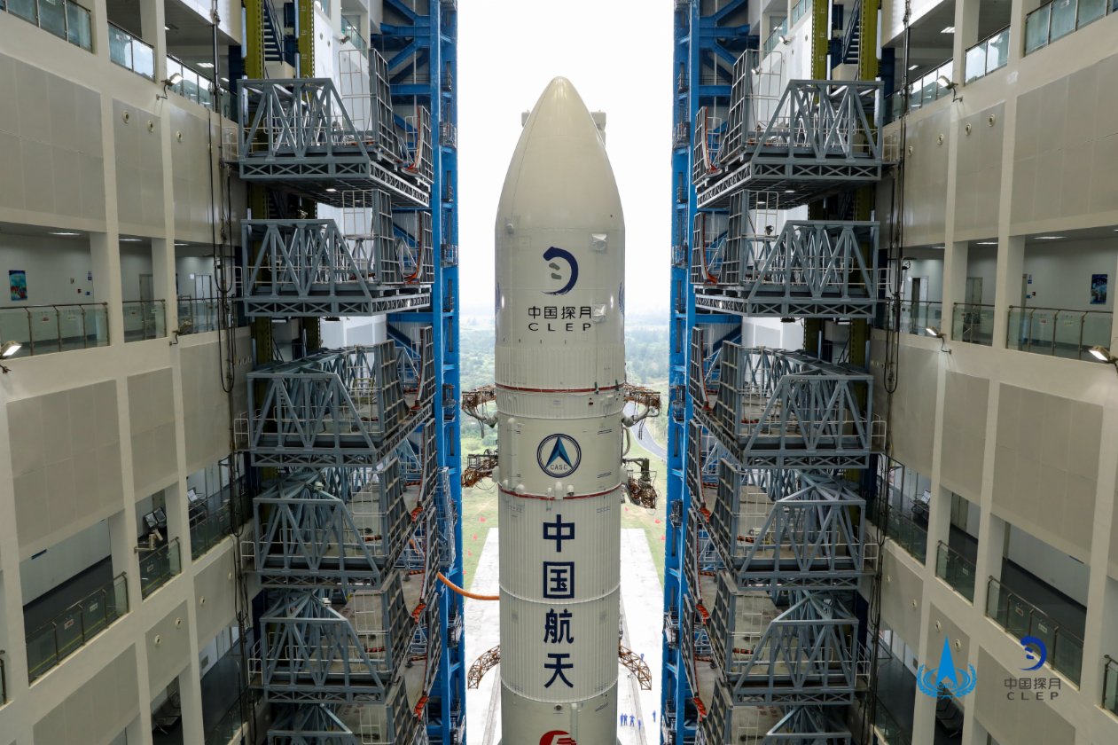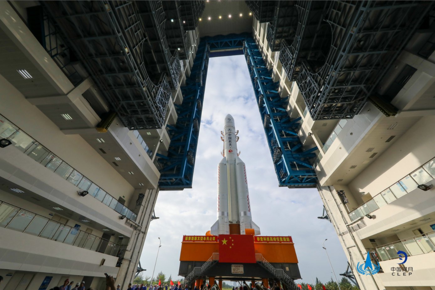 記者從國家航天局獲悉,11月17日,長征五號遙五運載火箭和嫦娥五號探測器在中國文昌航天發射場完成技術區總裝測試工作後,垂直轉運至發射區,計劃於11月下旬擇機實施發射。