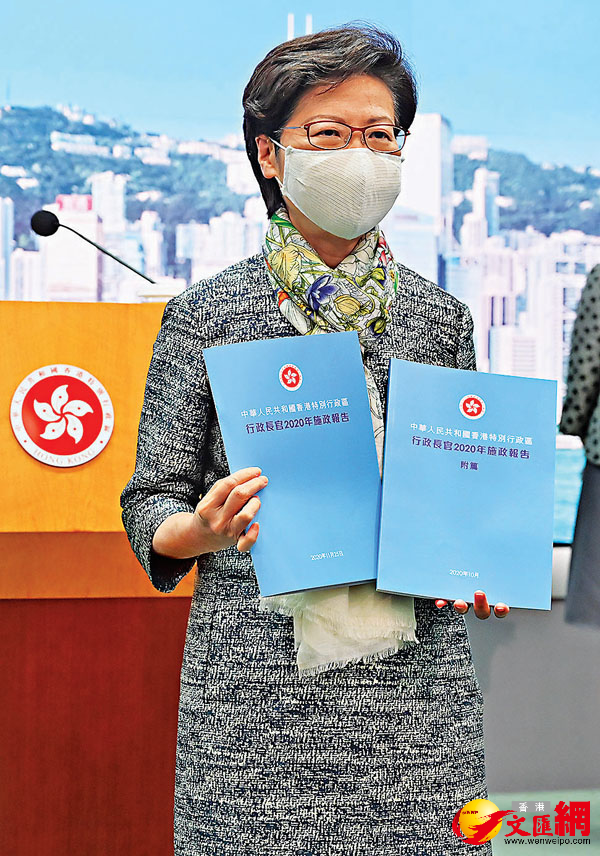 「在這份施政報告,大家會完整地看到我在本月初去北京、廣州和深圳得到支持的各項措施。」但她強調,如果香港不能有效地控制新冠肺炎疫情,所有措施都很難開展。她續說,在疫情之下,香港不能恢復與內地、外地的人流溝通的往還,在本地亦有很多活動都未能夠開展,難以推展各項有利民生和經濟的措施,所以特區政府現在的頭等大事,仍是全力應對新冠疫情。