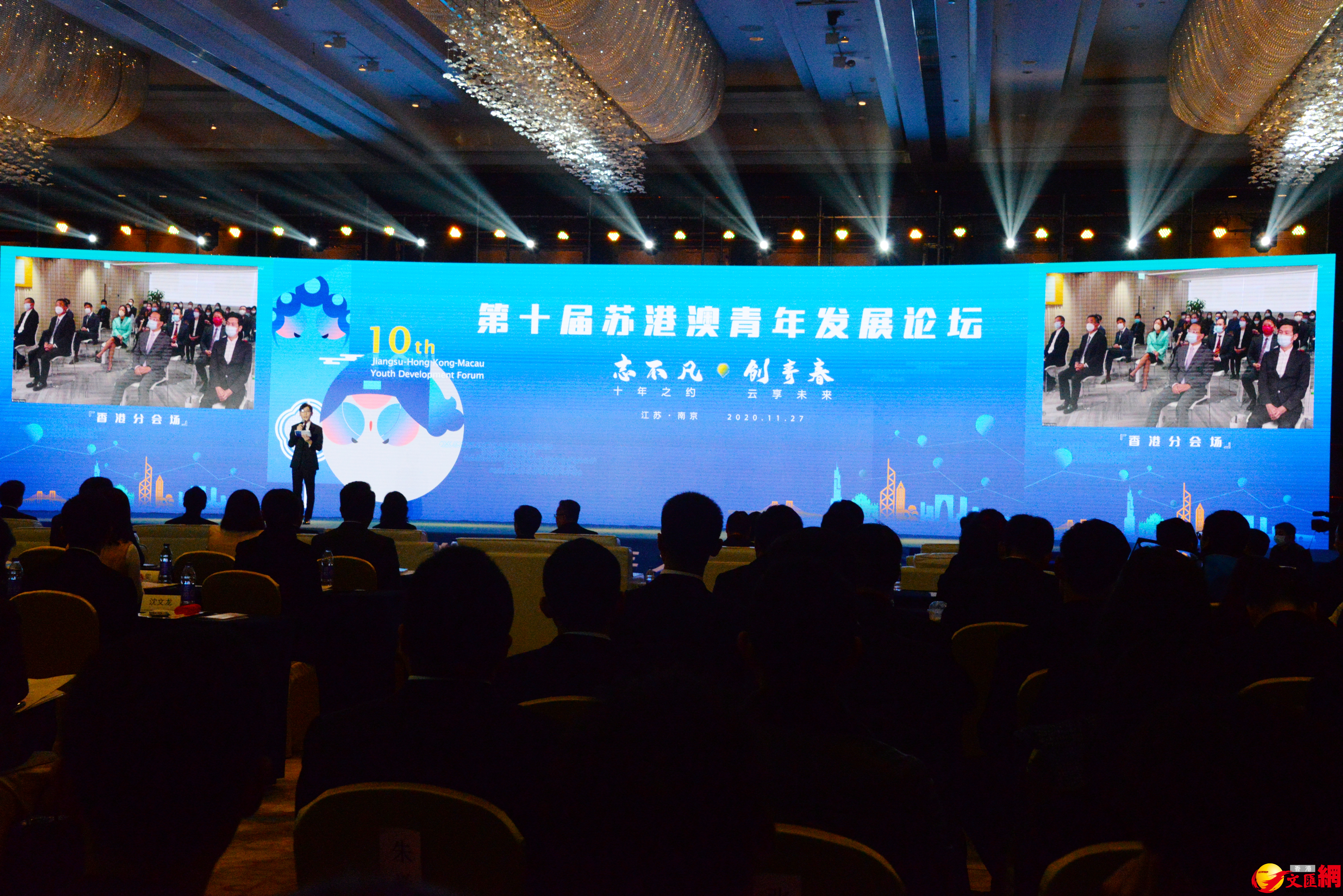 (香港文匯網記者 賀鵬飛 南京報道)第十屆蘇港澳青年發展論壇今日(27日)在南京和香港連線舉行,來自江蘇、香港、澳門三地的300多位青年代表分別在南京主會場和香港分會場參會。國務院港澳辦常務副主任張曉明為論壇發來賀信,希望蘇港澳三地青年為「一國兩制」實踐行穩致遠,為港澳融入國家發展大局和保持長期繁榮穩定,為中華民族偉大復興,貢獻更多青年力量。