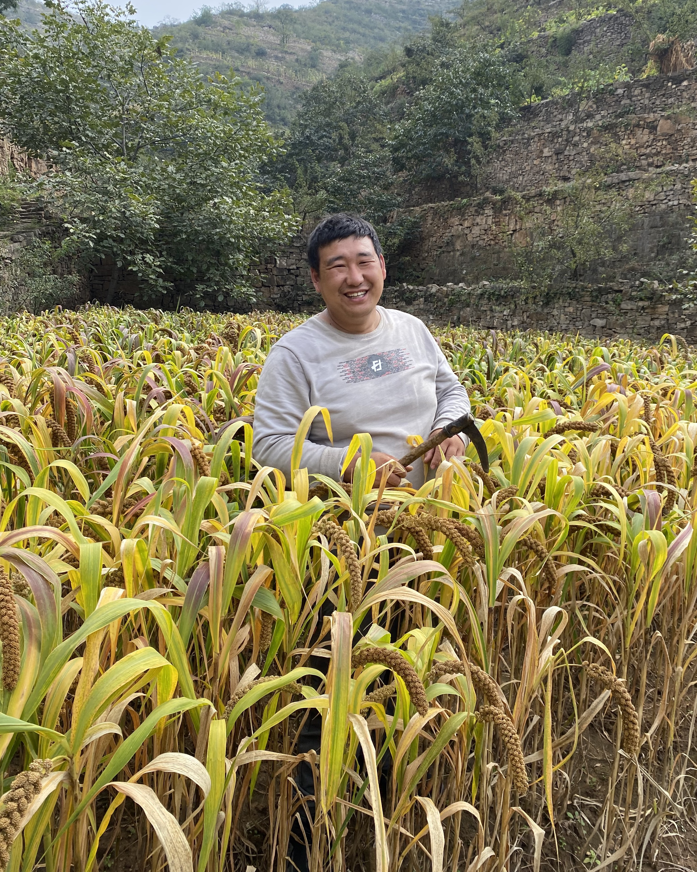 經過與死神的較量,他又滿血復活。2020年秋天,王虎林丟掉拐杖獨自爬上王金莊古兵寨,望穿千山萬壑,理想在歷史和自然中得以沉澱和澄清。這個秋天,王虎林奇跡般的收到2000份有機小米訂單,收購農民的穀子首次突破5萬公斤,生意比任何一年都火。