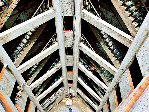 筒子樓天井縱貫上下,八邊形對應每層八戶人家,電影中用來拍追逐戲的Z字形樓梯縱橫交錯,從天井連往天台,形成樓內獨特風景線。站在底層仰望,頗有坐井觀天之感,旁邊黑壓壓,只剩頭頂有光,不禁讓人聯想到電影裏那句經典台詞「我們生活在陰溝裏,但依然有人仰望星空」。這裏仍舊生活着數家居民,以年紀大的婆婆、爺爺為主,氣氛安靜,沒有物業、沒有門禁、理髮5元人民幣。