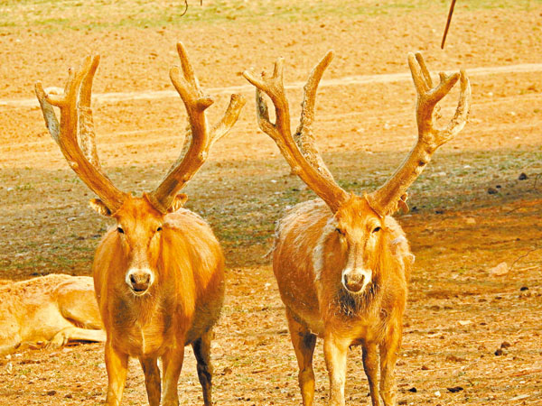 麋鹿,古稱麋,俗稱「四不像」,是隸屬偶蹄目、鹿科、麋鹿屬的大型哺乳動物,是中國特有的鹿科動物,因為其臉似馬、角似鹿、蹄似牛、尾似驢,俗稱「四不像」。雖然今年是麋鹿被科學發現的第155周年,但在此之前麋鹿早已被中國先民所發現、認識。作為從事麋鹿保護20多年的專家,郭耕向香港文匯報記者表示,在燦爛的中華文明中,麋鹿身影隨處可見:周朝滅紂,姜子牙的坐騎是麋鹿;楚大夫屈原有「麋何食兮庭中,蛟何為兮水裔」之辭;周朝的青銅器,漢代的瓦當……各朝各代有關麋的記載、描述不絕於書,全唐詩中可以找到關於麋鹿的詩句近百;清乾隆皇帝更有「麋鹿解說」之文刻於麋角,甚至中國道教的道觀中還能見到麋鹿之像。