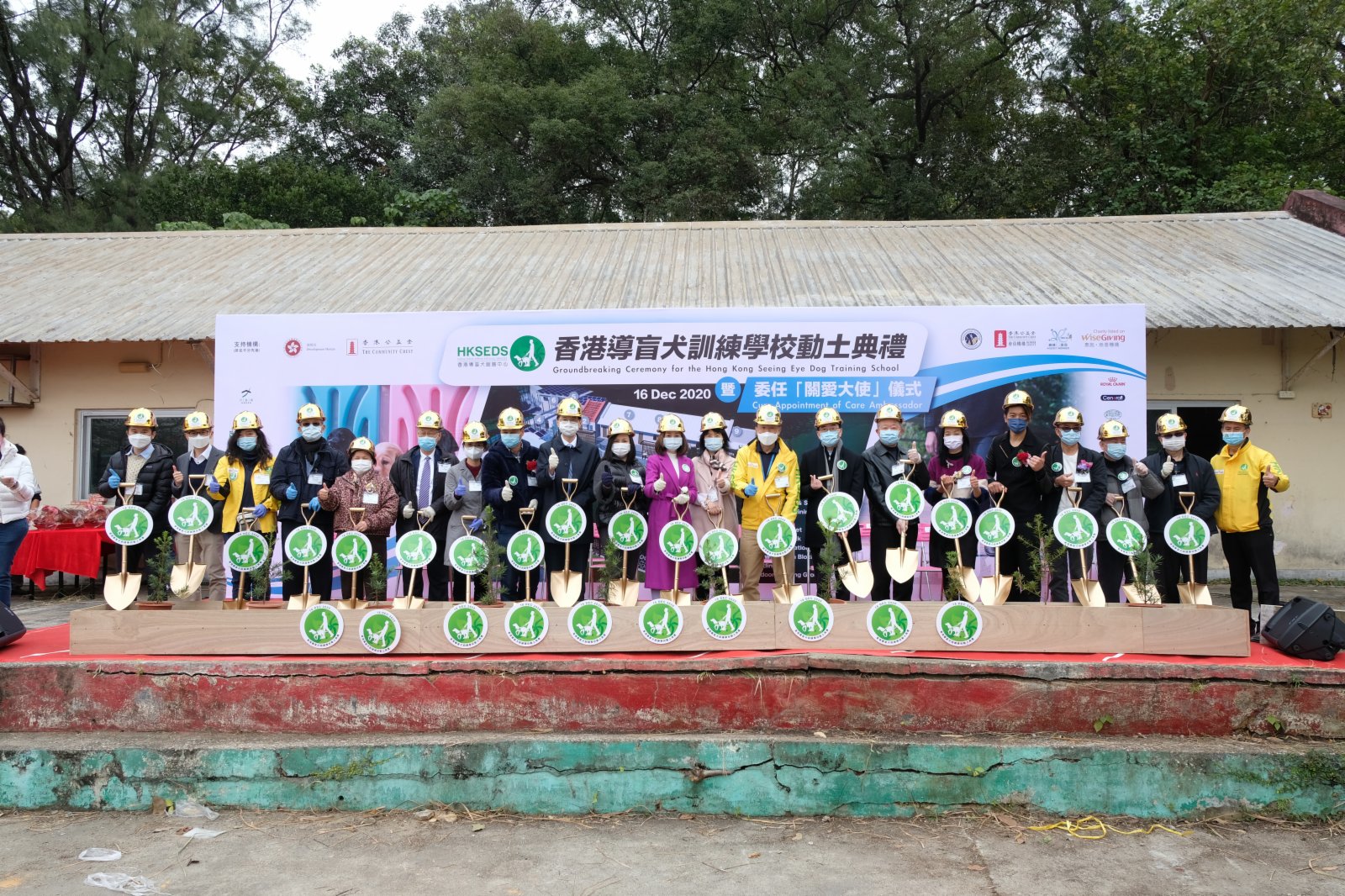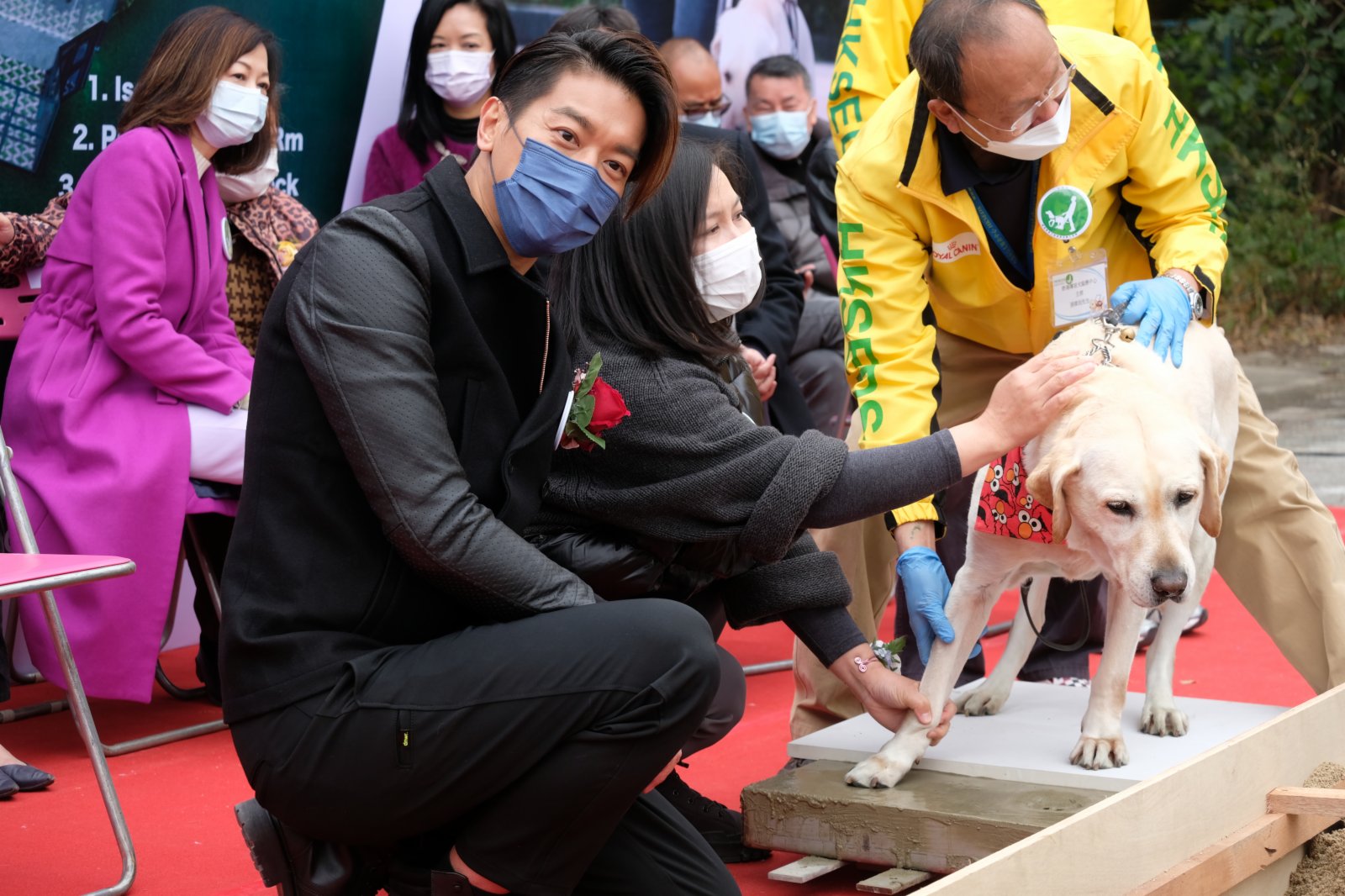 香港導盲犬服務中心即首間導盲犬訓練學校今天(16日)於打鼓嶺蓮麻坑路正式舉行動土典禮,預計明年11月中落成。香港影星黎諾懿被委任為導盲犬訓練學校的「關愛大使」。(大公文匯全媒體記者麥鈞傑攝)