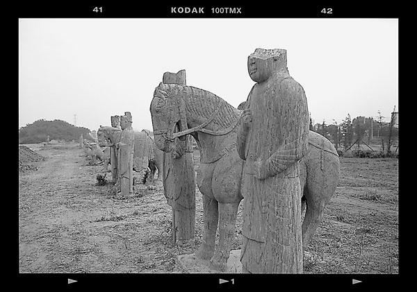 文官的拘謹自不必言。較諸秦俑,武官多的是以肥胖為表徵的雍容,少的是像狼一樣只剩筋骨的兇狠。有唐一代和北宋時期中國的個性特徵和樣貌,就這樣通過帝王陵寢前的石刻造像,準確地說,通過這些被記錄下來造像的影像,穿越千年時光,被今人感知和解讀。