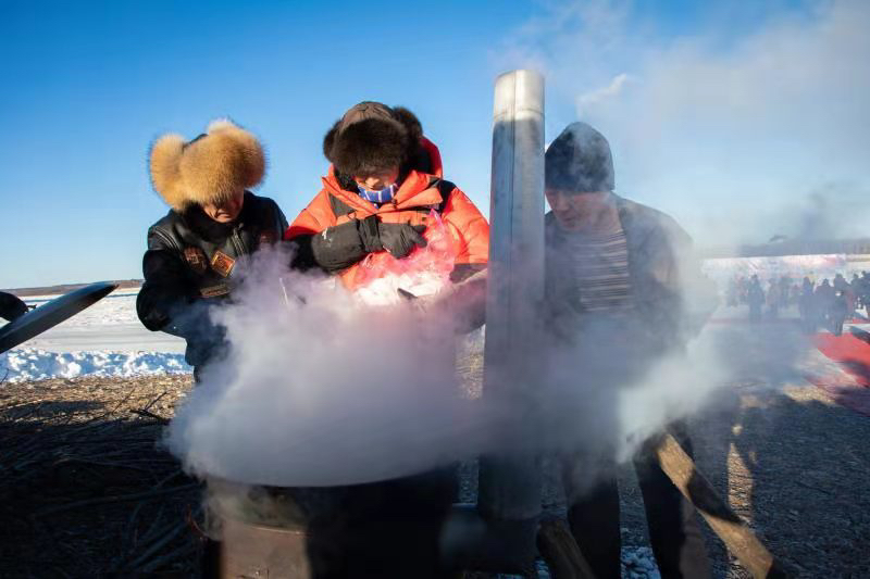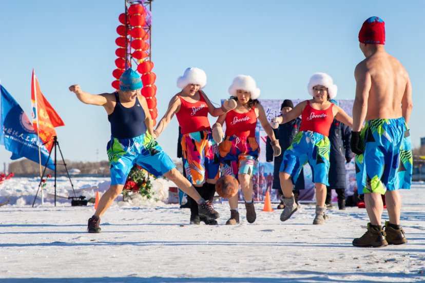 現場還設置了雪地足球比賽、冰桶挑戰、跳水表演、冬泳表演、隔池拔河、泳裝滑冰等多個活動項目,準備了俄式啤酒、酸菜燉大鵝、豆包、玉米等地方特色美食,讓來自全國各地的冬泳愛好者盡情享受冬泳的樂趣和黑河的熱情。
