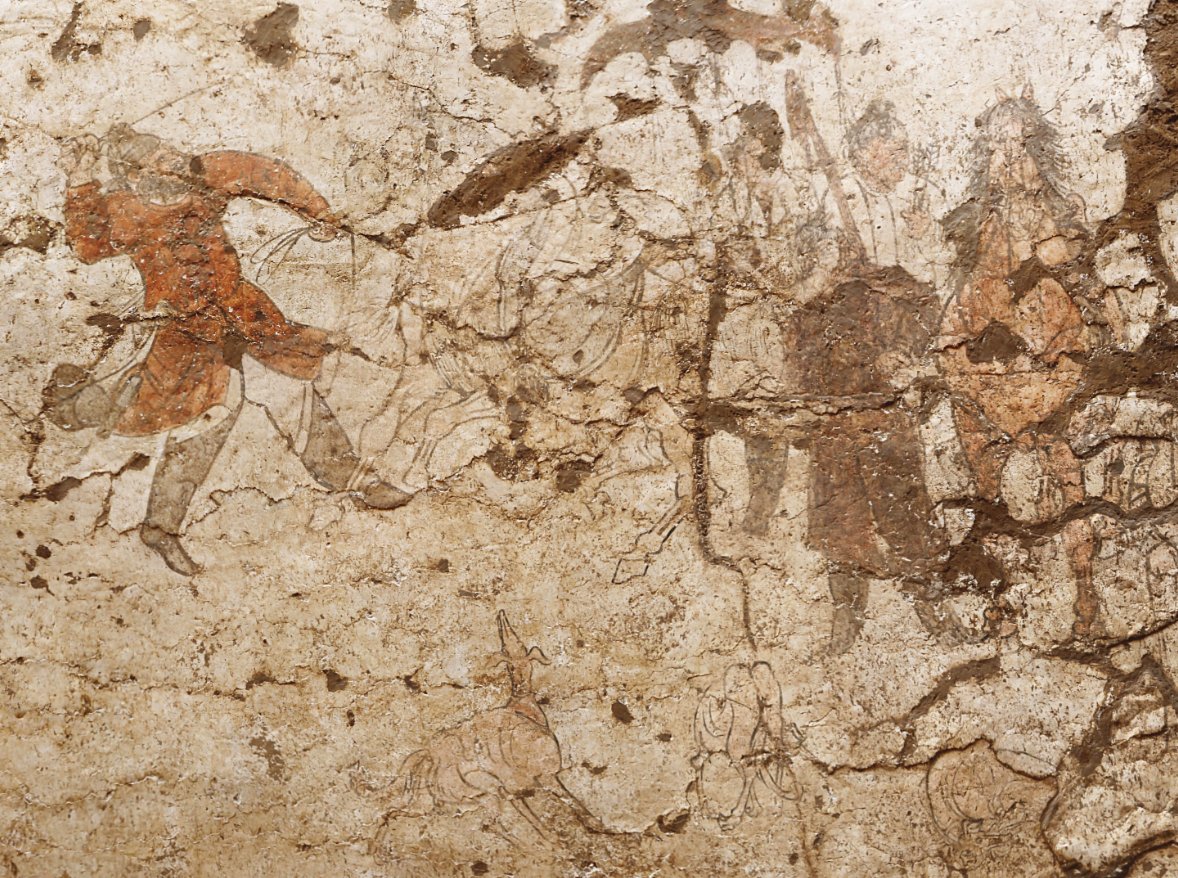 (香港文匯網記者 李陽波 西安報道)「壁畫所繪人物、動物形象生動,用筆流暢,其意趣獨特、構圖新穎,是較為罕見的唐墓壁畫題材。」記者9日從陝西省考古研究院獲悉,該院近日在對陝西西咸新區空港新城布里村北兩座唐墓所進行的考古發掘中,出土一批精美唐墓壁畫。特別是其中一副罕見的《胡人馴馬圖》,其所繪內容不僅與墓主唐朝馬政官員和粟特部族後裔等身份驚人的吻合,真實再現了墓主人的生前生活,同時也讓今人有機會一窺千年之前大唐的輝煌與繁榮。
