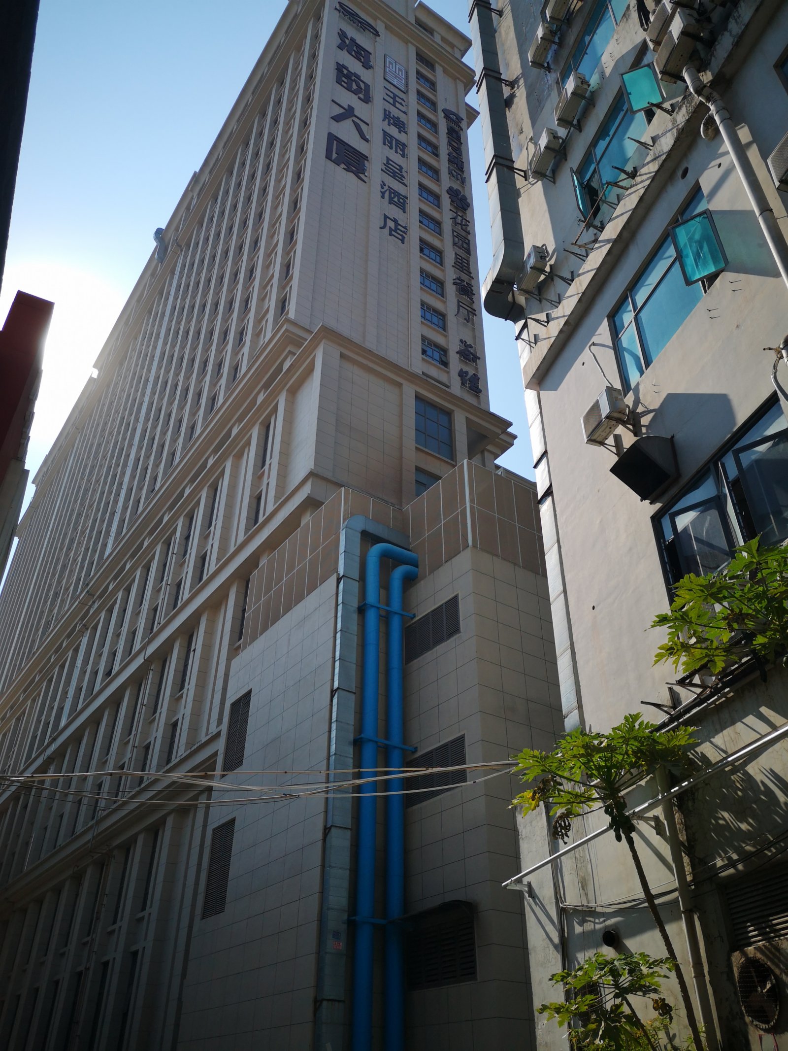 查閱相關資料發現,海韻大廈建造之前,原址上的建築物為「新一代酒店」。根據寶安區政府2010年7月22日會議紀要精神,因民治河河道整治需要,在不佔用國有土地、不增加建築面積、不對外合作建設的前提下,允許由沙嚇股份合作公司對新一代酒店拆舊建新,酒店的規劃、建設、管理由民治街道辦負責協調落實。