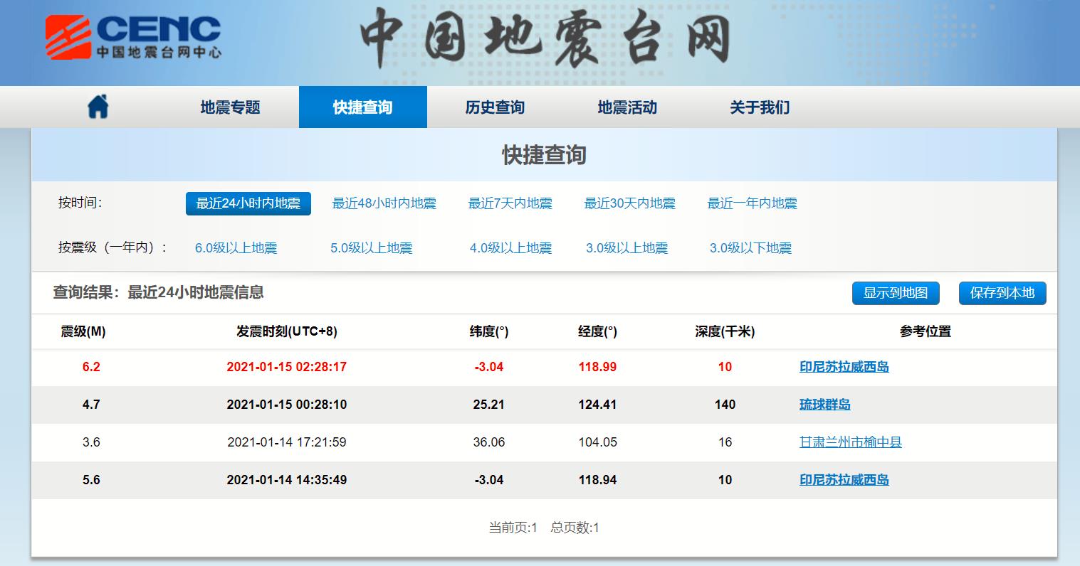 經中國地震台網測定,印度尼西亞蘇拉威西島15日2時28分發生6.2級地震,深度為10千米。