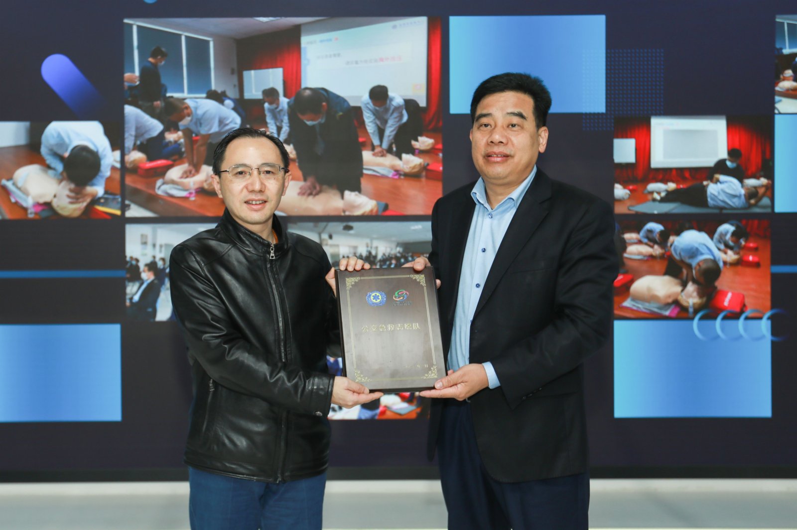 投放儀式上,巴士集團副總經理、安全總監高波與深圳市急救中心主任周強共同投放AED設備,同時,「公交急救志願隊」宣布正式成立。深圳市急救中心主任周強為首批9名通過考核的巴士集團駕乘人員代表頒發「初級救護員」資格證。