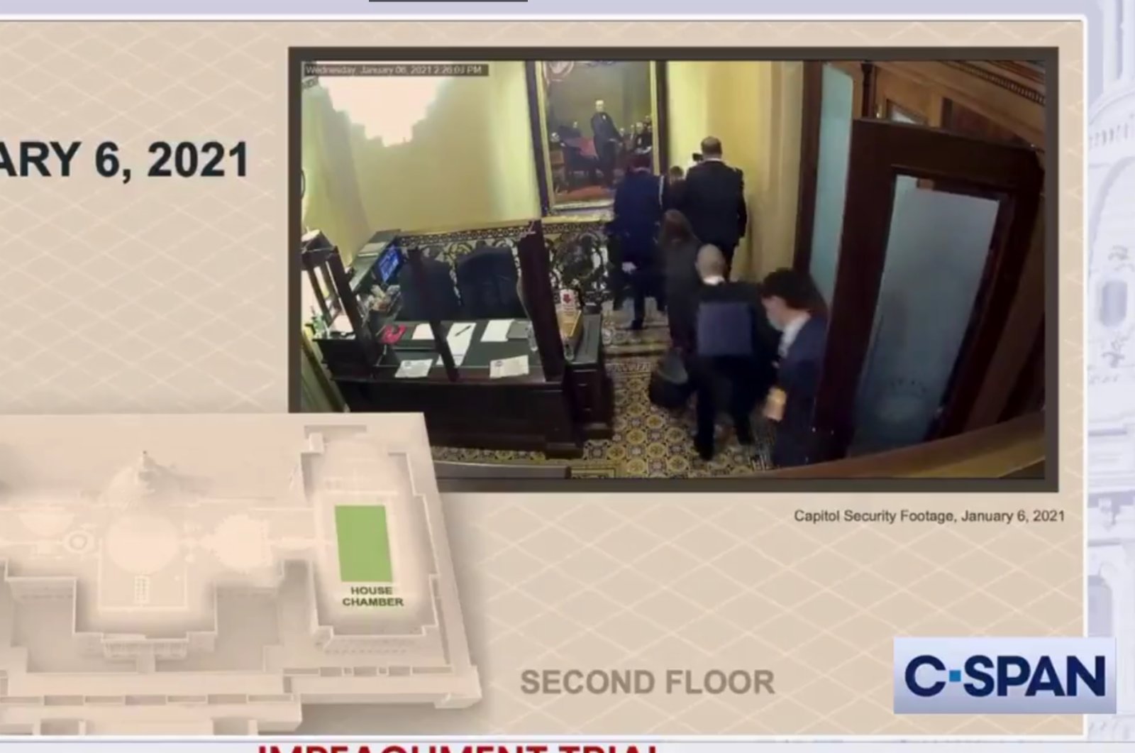 閉路電視畫面顯示,彭斯逃離參議院議事廳時,身後有一名手持兩個手提包的軍官,其中左手拿着屬於副總統的「核足球」。國防部官員透露,掌管核武的戰略司令部看過有關片段後,才理解事件的嚴重性。