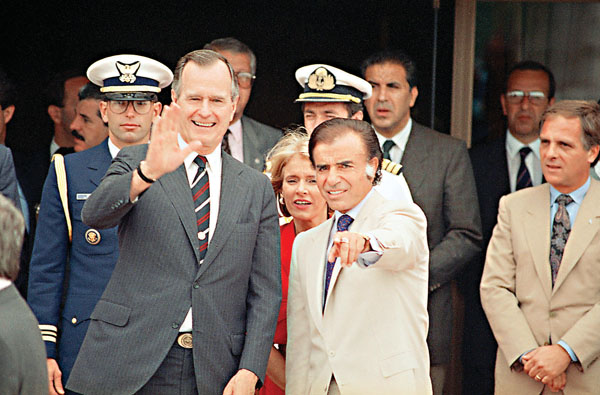 不過梅內姆出任總統後,卻推行與「貝隆主義」截然相反的經濟及外交政策,積極向美國靠攏並支持「華盛頓共識」,推行一系列市場開放及私有化政策,並將阿根廷披索與美元掛鈎。這些政策雖然成功把高達5,000%的通脹率降至接近零,令經濟恢復穩定,但同時埋下經濟落入外資控制、幣值被嚴重高估、無法以貨幣手段調節經濟的局面。