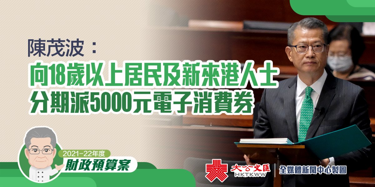 大公文匯全媒體報道:財政司司長陳茂波今日(24日)上午11時,在立法會宣讀2021/22年度財政預算案。他指,今年財政預算案未有一如去年派發現金,改為發放5000元電子消費券,希望有助刺激經濟消費。