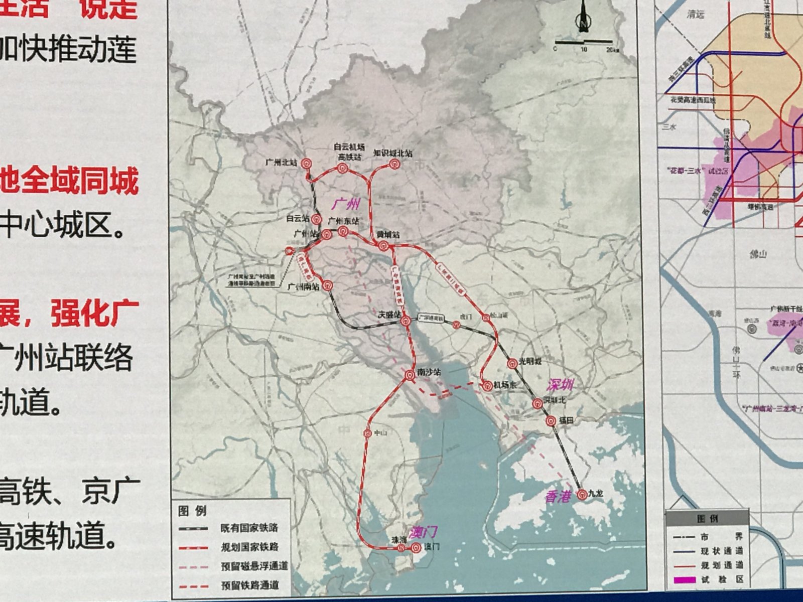 廣州是粵港澳大灣區交通圈的核心樞紐,整個大灣區相關交通建設往往以廣州為支點,進行通盤規劃。24日,廣州市規劃和自然資源局黨組成員、副局長周青峰表示,為落實粵港澳大灣區發展規劃綱要,該局組織編製了《廣州市交通發展戰略規劃(2018-2035年)》,從戰略層面系統謀劃大灣區交通一體化格局。周青峰展示的規劃圖上,廣深磁懸浮預留線路正式曝光。