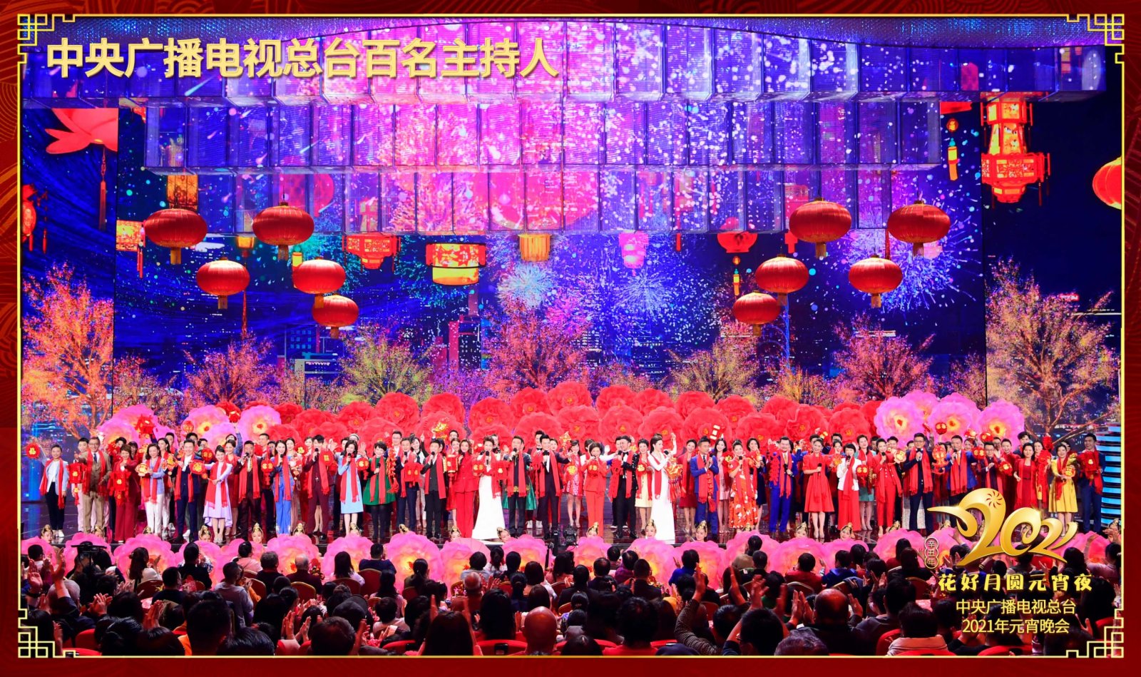 元宵晚會的舞台上,中央廣播電視總台百名主持人齊聚。來自各個頻道、頻率及新媒體平台的他們戴着紅圍巾唱響《難忘今宵》,手中拿着各式各樣的小燈籠、福字、春字、年年有「魚」等道具,為全國觀眾送上元宵祝福。網友紛紛表示,「國家隊的牌面!」「難得一見!總台範兒就是正!」「都是大家喜歡的主持人,這個節目太棒了!」