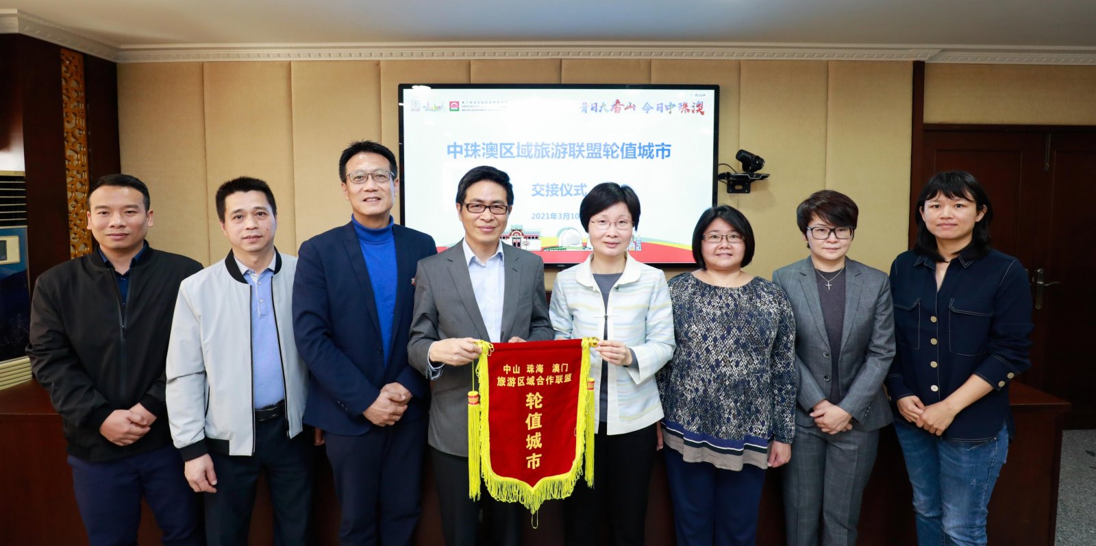 受新冠肺炎疫情影響,2020年度的「中珠澳旅遊區域合作聯盟工作會議」未能如期召開,中山市文化廣電旅遊局連續兩年擔任輪值主席。會上,先由2019年輪值主席中山市文化廣電旅遊局總結過去兩年三地旅遊合作情況,隨後與新任輪值主席澳門特區政府旅遊局交接。程衛東介紹2021年聯合推廣合作計劃;三方探討未來的區域旅遊合作並商議今年共同開展的旅遊推廣活動及宣傳等項目。會上,三地旅遊部門同意2021年全力配合支持澳門建設世界旅遊休閒中心,相互支持參與各地舉辦的活動;加強推動三地客源互送;以各地的重點旅遊資源,打造精品旅遊路線,結合三地旅遊優惠進行宣傳;聯合推進三地研學遊;組織澳門及中山業界考察珠海的海洋、海島、濱海旅遊項目;更新中珠澳旅遊手冊等。中山市文化廣電旅遊局更安排珠海及澳門的旅遊領導參觀考察孫中山故里旅遊區及左步村,加深兩地對中山旅遊資源的了解。