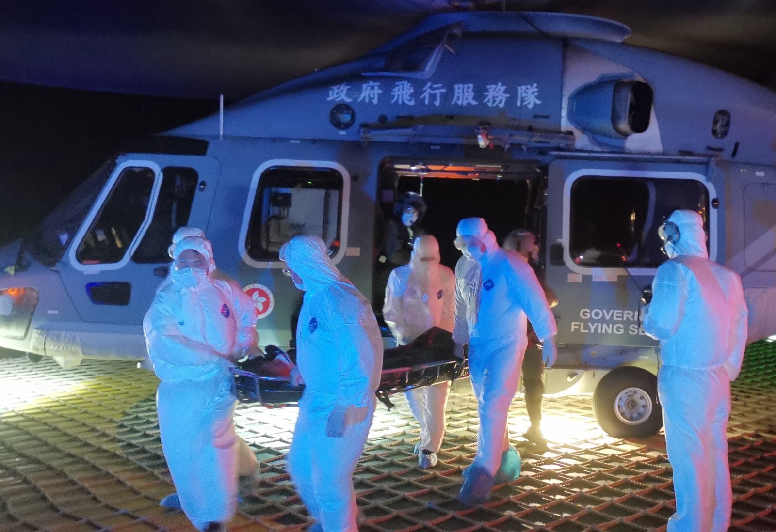 當天18時45分和19時01分,香港政府飛行服務隊的固定翼飛機和救援直升機依次抵達漁業調查船海域,開始組織實施專業救援。考慮到疫情因素,將患者送往香港治療存在防疫及出入境協調等諸多問題,中海油深圳分公司應急指揮小組協調香港救援隊把人員轉運到海上平台,再由倒班直升機作為醫療撤離轉機送至深圳。