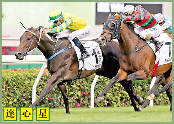 第八場、四歲馬、二○○○米(香港打大賽)。接近九百米處時,「智慧神駒」被向外斜跑的「包裝永勝」帶出外疊,沒有遮擋。過了七百米處後,「包裝永勝」在「智慧神駒」與「銀馳」之間緊迫競跑之際一度失去平衡,當時「銀馳」將頭轉側及外閃。獸醫於賽後立即檢查「智慧神駒」,內窺鏡檢查顯示該駒的氣管內有很多痰。「達心星」(圖1號)及「將王」均須抽取樣本檢驗。