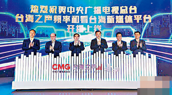 香港文匯報訊 中央廣播電視總台對台灣廣播台海之聲和「看台海」新媒體平台,3月24日開播上線。中宣部副部長、國家廣播電視總局局長聶辰席,中宣部副部長、中央廣播電視總台台長兼總編輯慎海雄,中共中央台辦、國務院台辦主任劉結一,中央廣播電視總台編務會議成員李挺等共同為台海之聲及「看台海」新媒體平台啟動開播上線。
