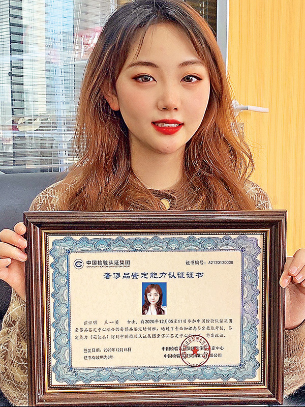 得益於二手奢侈品市場的火爆,鑒定師、養護師等衍生行業也在國內發展迅速。為了更好的辨別產品真偽,去年12月,王一貝特意到北京中檢集團學習奢侈品箱包鑒定。培訓時間一周,培訓內容為各種奢侈品箱包、服飾的鑒定技巧與方法,學費及食宿費用共花費2萬元。最後需參加能力認可證書考試,通過方可拿到證書。