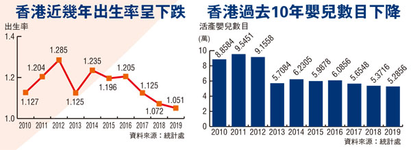 陪月市場也面臨香港少子化的隱憂,香港出生率一向以低見稱,根據統計處去年12月的統計月刊顯示,過去年10年即2010年至2019年的出生率徘徊於1.051至1.285之間,最近3年的出生率即2017、2018、2019年分別為1.125、1.072、1.051,可見下降趨勢持續。