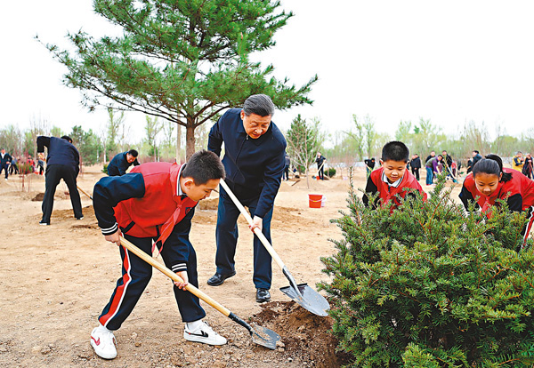 習近平強調,美麗中國建設離不開每一個人的努力。美麗中國就是要使祖國大好河山都健康,使中華民族世世代代都健康。要深入開展好全民義務植樹,堅持全國動員、全民動手、全社會共同參與,加強組織發動,創新工作機制,強化宣傳教育,進一步激發全社會參與義務植樹的積極性和主動性。廣大黨員、幹部要帶頭履行植樹義務,踐行綠色低碳生活方式,呵護好我們的地球家園,守護好祖國的綠水青山,讓人民過上高品質生活。
