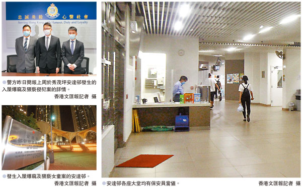 秀茂坪安達邨發生令人髮指的入屋掠財劫色案。一對案底纍纍的雌雄匪,潛入公屋大廈佯稱派口罩,「打盲毛」式拍門試探單位是否有人,以伺機爆竊。剛巧有一戶人家只有年僅12歲女童在家,女童一度沒上當拒開門,惟劫匪威嚇向房屋署舉報女童於單位內養狗,女童害怕愛犬被捉走,故被迫開門。女歹徒在屋內大肆搜掠約5,600元財物,男匪更起色心,對女童上下其手作出嚴重猥褻行為,並用手機拍下過程。警方高度重視案件,重案組探員憑「天眼」鎖定雌雄匪及連日埋伏監視,先後於周日(4日)及昨日把兩人拘捕。●香港文匯報記者 蕭景源