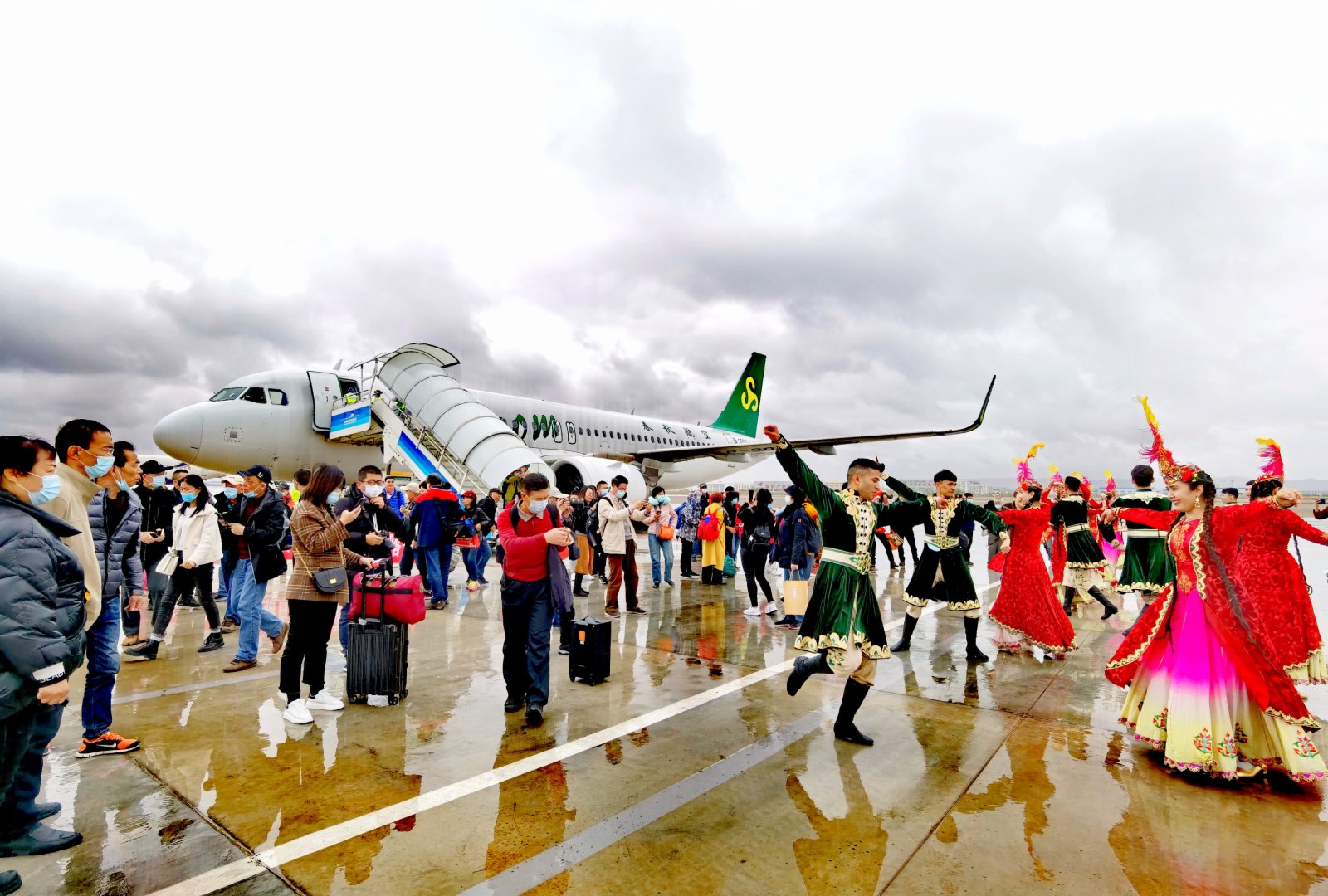 (香港文匯網記者 夏微 上海報道)7日15時20分,春秋航空滿載180名遊客的9C6345航班平穩降落在喀什機場,開啟了2021年上海旅遊援疆包機工作。