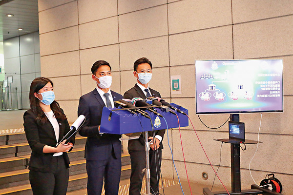 香港文匯報訊(記者 蕭景源)警方偵破一個本地犯罪集團,拘捕9人,涉嫌於過去1年以網上情緣及網上投資行騙手法犯案,最少有55名受害人,損失金額共逾3,500萬元,其中最大一宗騙案受害人為女鋼琴老師,被騙投資礦原料痛失900萬元。警方同時發現,犯罪集團涉透過多達300個「傀儡」銀行戶口,半年間清洗逾9億元黑錢,正追查有關資金流向及戶口持有人資料,不排除有更多人被捕。