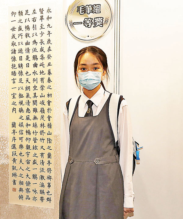 凱琳的媽媽羅女士說,女兒升高中後因為功課忙好少時間練習書法,只是抱一個參加的心態參與,對是次獲獎感到意外。
