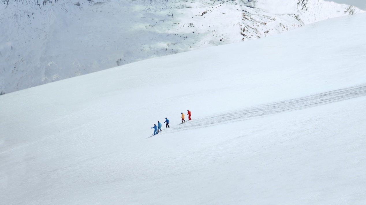 近日,新疆阿勒泰地區將軍山2.4平方公里的雪場上,出現了一幅巨大的《雪地宣言》。