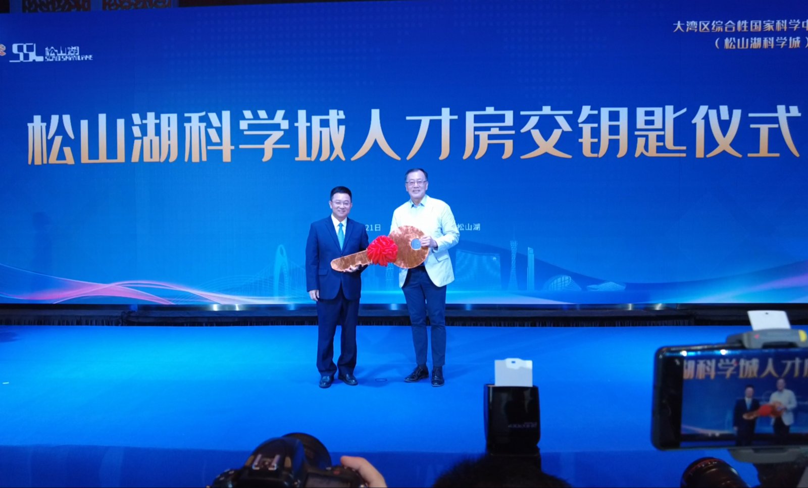 (香港文匯網記者 帥誠 盧靜怡 報道)在21日召開的大灣區綜合性國家科學中心先行啟動區(松山湖科學城)政策發布會上,東莞市委常委、松山湖黨工委書記劉煒為人才代表松山湖材料實驗室常務副主任陳東敏交上600套人才安居房鑰匙,這600套人才房計劃年內完成交付。