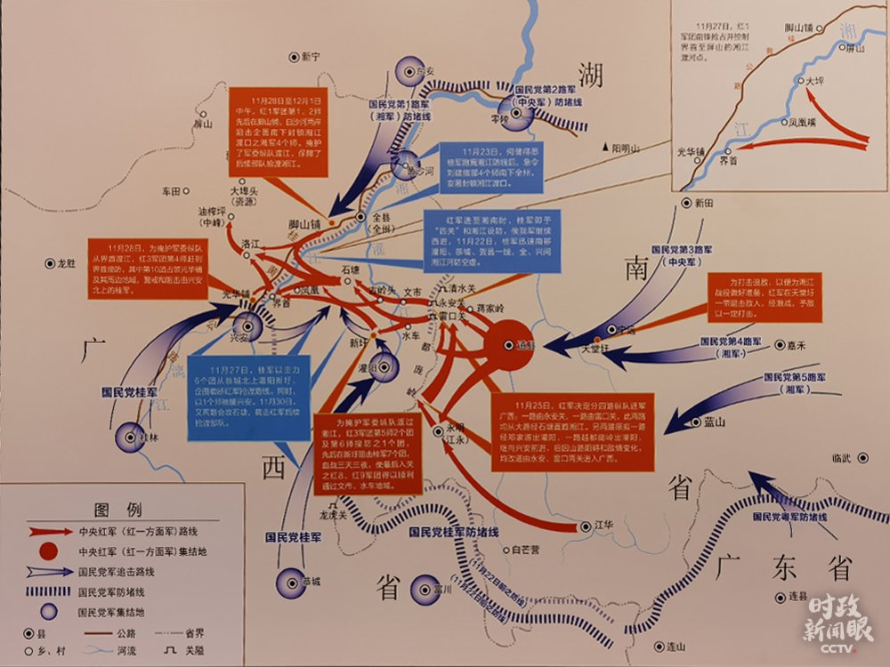 湘江戰役,紅軍長征途中的生死存亡之戰。1934年11月27日至12月1日,中央紅軍在廣西北部的湘江岸邊與國民黨軍展開殊死決戰,突破敵人重兵設防的第四道封鎖線,粉碎了圍殲中央紅軍於湘江以東的計劃。但中央紅軍損失慘重,從長征出發時的8.6萬人銳減至3萬餘人。
