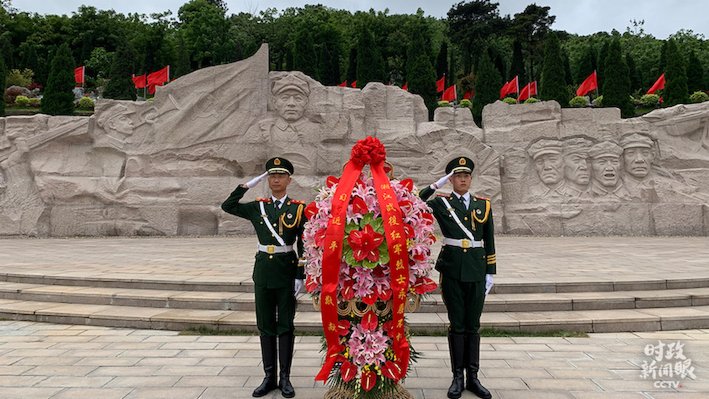 25日上午,總書記向湘江戰役紅軍烈士敬獻花籃,並參觀了紅軍長征湘江戰役紀念館。
