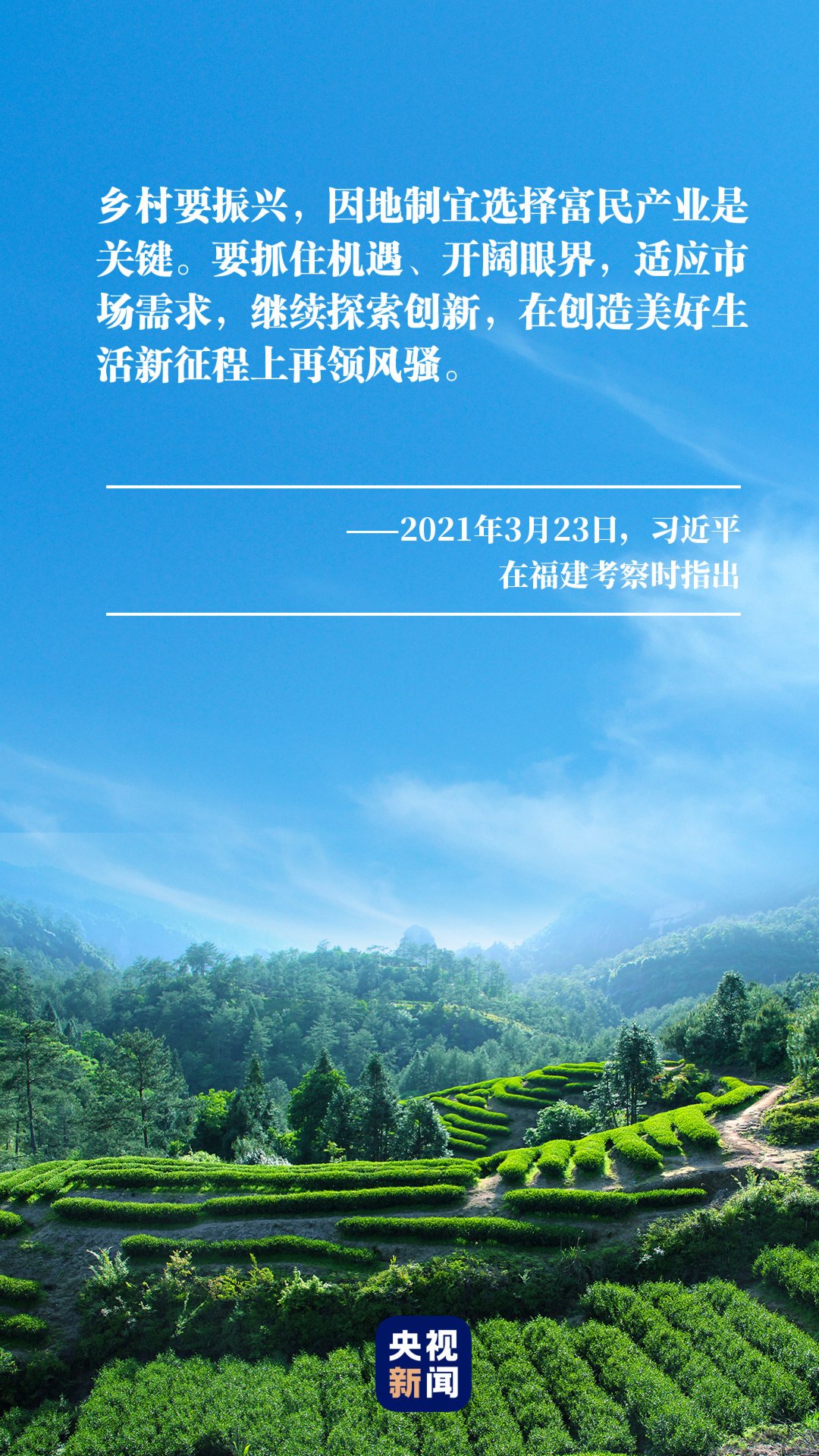 一年前的陝西,秦嶺深處柞水縣金米村,總書記點讚 「小木耳,大產業」;11個月前的山西大同雲岡,總書記稱讚 「小黃花,大產業」;一個月前的福建武夷山,總書記考察當地茶產業發展情況,強調打牢鄉村振興的產業基礎。