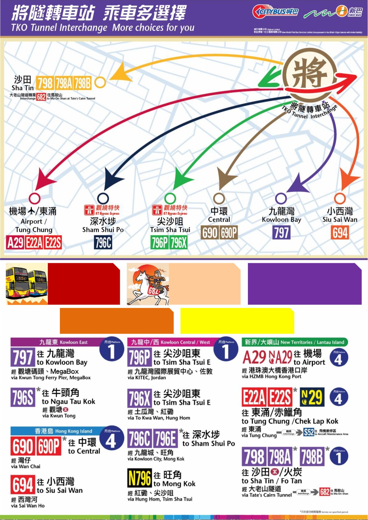 新巴城巴會密切留意各條路線的營運情況及乘客需求,以及轉乘站乘客的候車情況,有需要時靈活調動巴士資源。公司亦會於將軍澳隧道的啟用初期,於上午繁忙時間安排前線員工在場協助乘客。乘客可透過新巴城巴App查詢各線的實時抵站時間,輕鬆掌握行程。