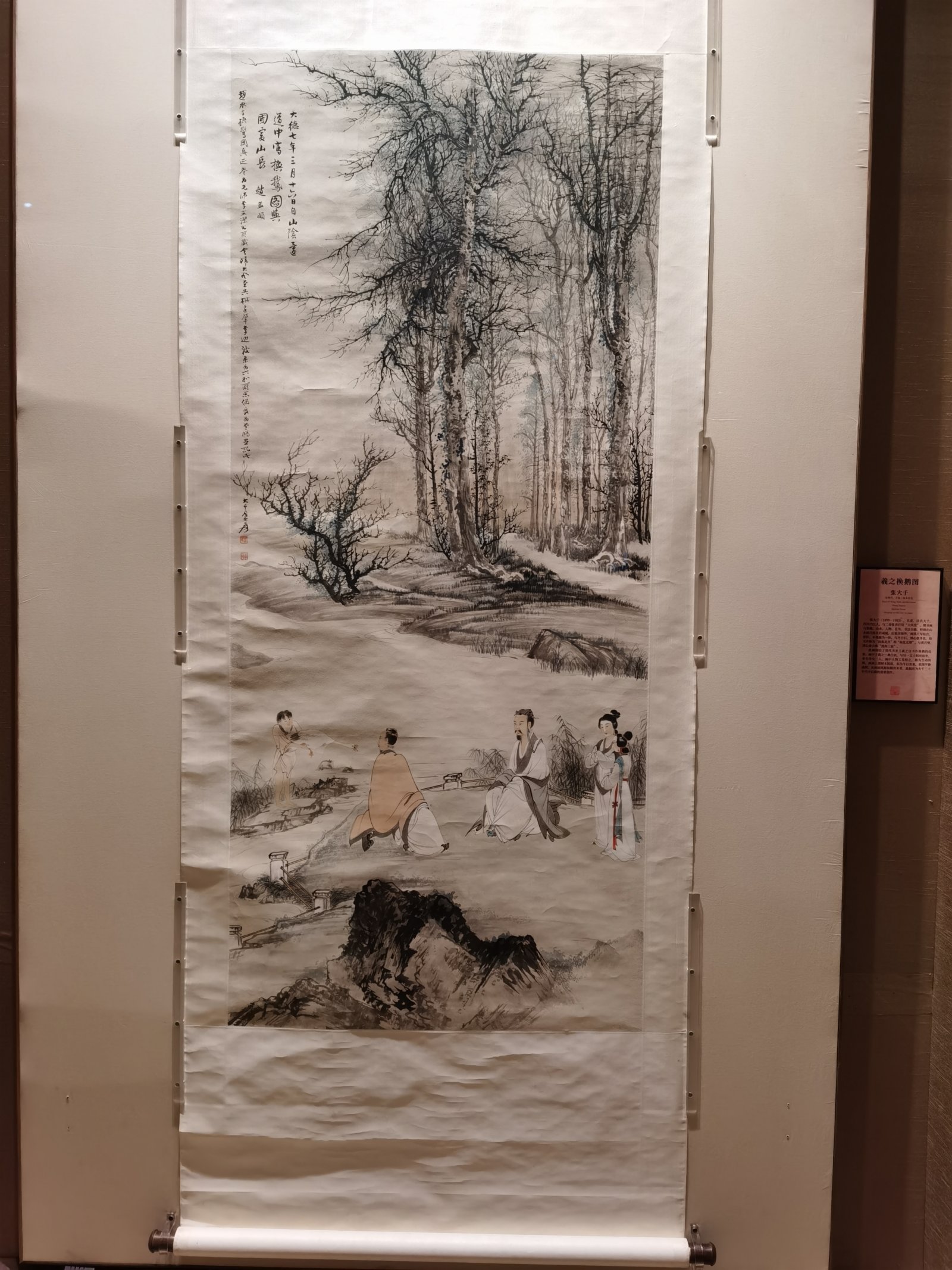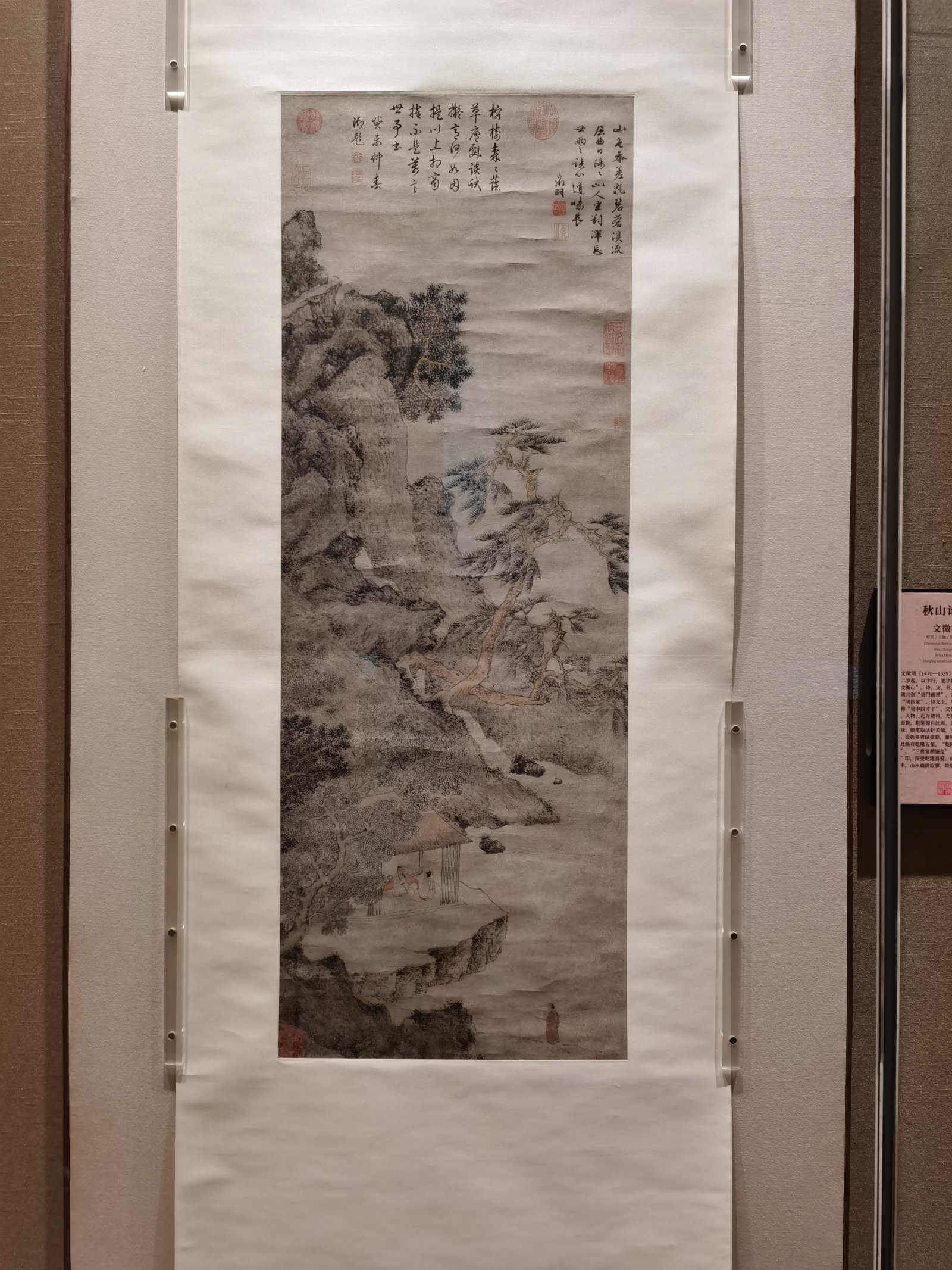 山水部分還展出了夏圭、沈周、文徵明、王翬、查士標、龔賢、鄭重、黃賓虹、陸儼少等藝術家的山水題材作品, 其中鄭重的《江山勝覽圖》畫面中囊括山間良宅、童子牧牛、樵夫砍柴、乏舟、論道、觀瀑、竹林撫琴、院中戲犬、作畫等,不僅展示了明代古金陵山水之壯美,也營造了一幅古代金陵文士幸福生活的理想藍圖。