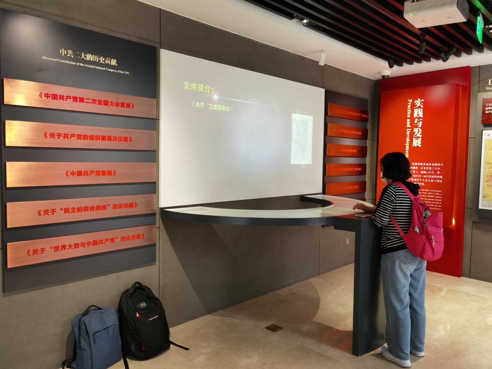 記者在現場看到,經過修繕後的二大紀念館由「序廳、中共二大展廳、中共二大會議舊址、黨章歷程廳、平民女校舊址展廳」五個展區組成。展館內部空間不大,但展陳布置體現了「巧中見精」。儘管才開放不久,就吸引了不少市民慕名帶着孩子過來打卡。很多中小學生更是身着正裝、佩戴着紅領巾前來以顯鄭重。