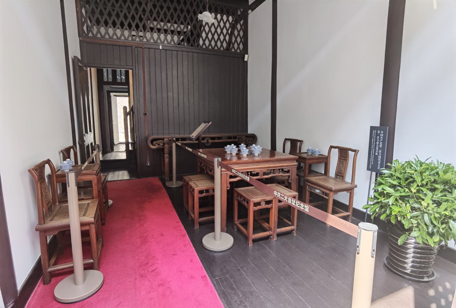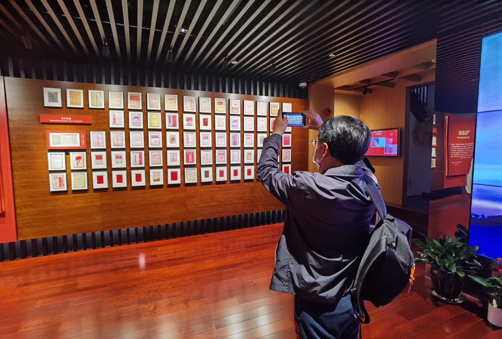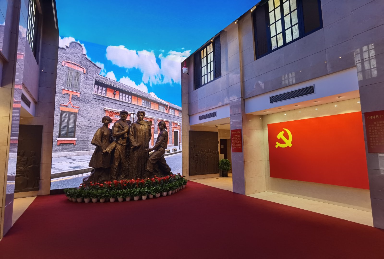 據介紹,本次紀念館內部改造圍繞建黨百年,優化了場館空間布局,改進展陳形式,調整展陳內容,着力呈現「石庫門裏的紀念館」。重新布置了序廳宣誓區陳列。調換了部分代表的照片,並對部分代表照片進行專業修復,以提高史料準確性。進入展館內,十二位代表展牆採用雙層夾膠通電玻璃,通過電源控制來調節通電玻璃透明度,完整呈現展廳外陽光長廊以及石庫門風貌。