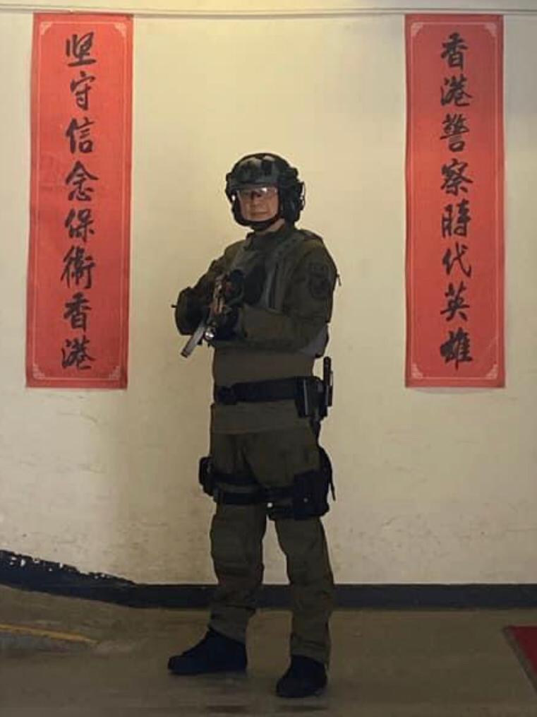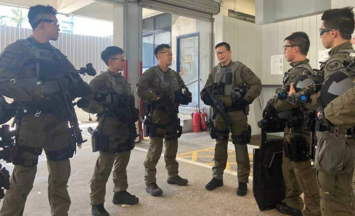 大公文匯全媒體報道:網上流傳一段警務處處長鄧炳強參與反恐演習的影片!原來是内地節目採訪香港反恐特勤隊,期間穿了一身反恐制服的「一哥」突然現身,與前線同事一同拍攝。片段見到「一哥」在同僚的協助下檢視裝備,戴上頭盔,提起步槍,威風凜凜,氣勢如虎。鄧炳強表示,希望親身到場和同事們一起參與,體現上下一心的團結精神;而親身與反恐特勤隊同事並肩作戰,這種感覺讓他本人也很興奮。