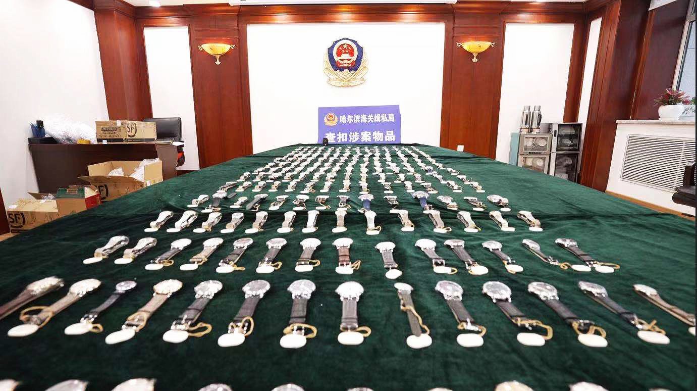 (香港文匯網記者 吳千)記者今日(12日)在哈爾濱海關獲悉,近日,哈爾濱海關緝私局成功偵辦一起走私手錶案,案值1.83億元人民幣(下同),偷逃稅款5684.54萬元,查證走私進口高檔手錶24061塊,查扣涉案走私手錶1558塊價值1548.47萬元,查扣涉案贓款92.37萬元。一舉打掉以哈爾濱人蔣某為首的長期盤踞在哈爾濱、深圳兩地大肆從事從香港走私進口高檔手錶犯罪的走私團夥並成功擴案。