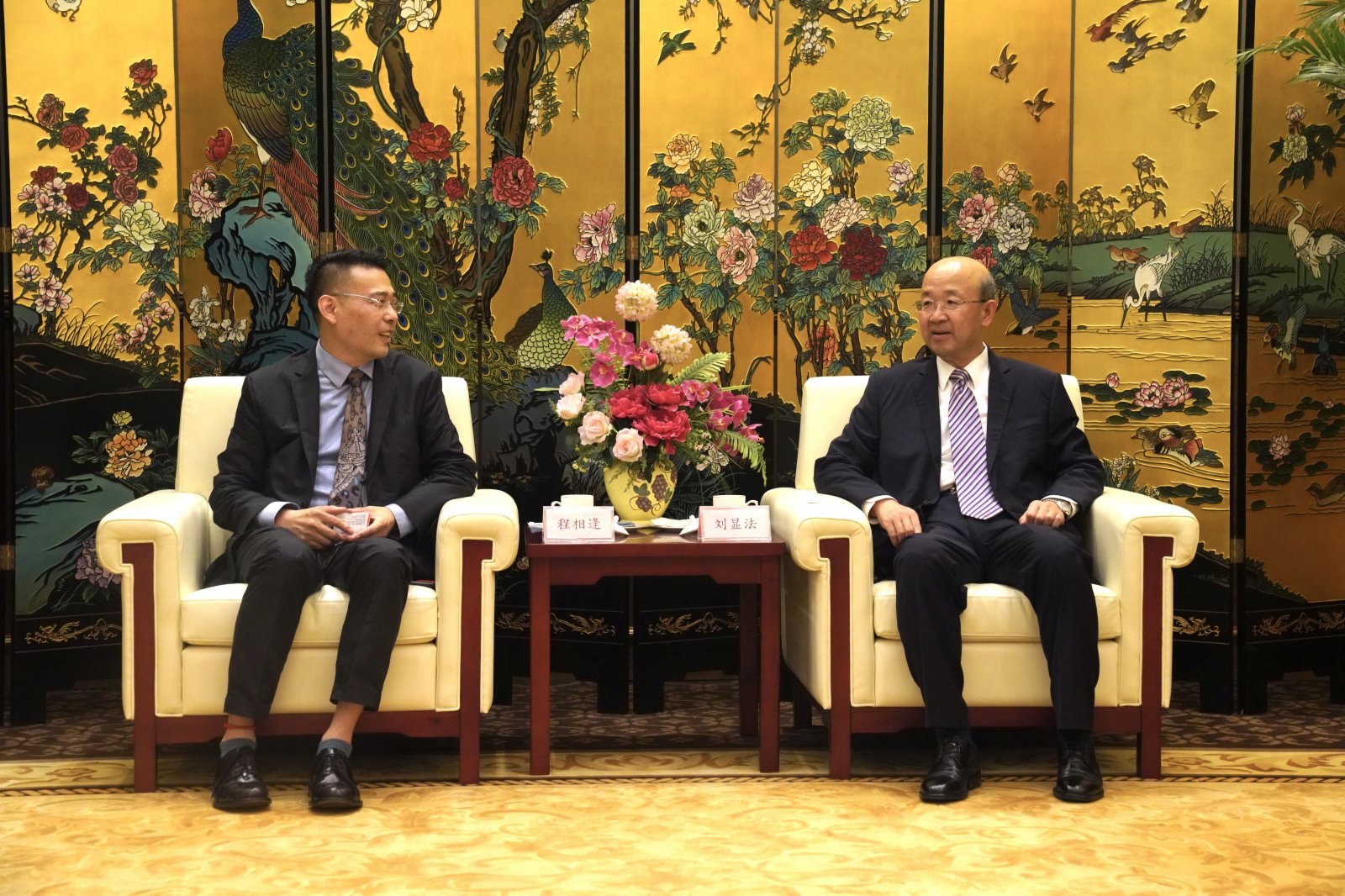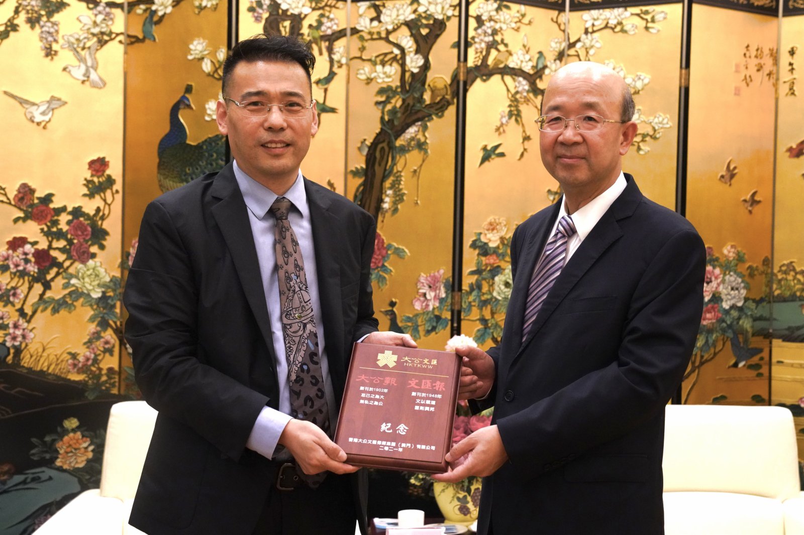 (香港文匯網記者 車玲玲)5月12日,香港大公文匯傳媒集團澳門有限公司總經理、澳門新聞中心主任程相逢一行拜會外交部駐澳門特別行政區特派員公署,與特派員劉顯法進行深入的交流。