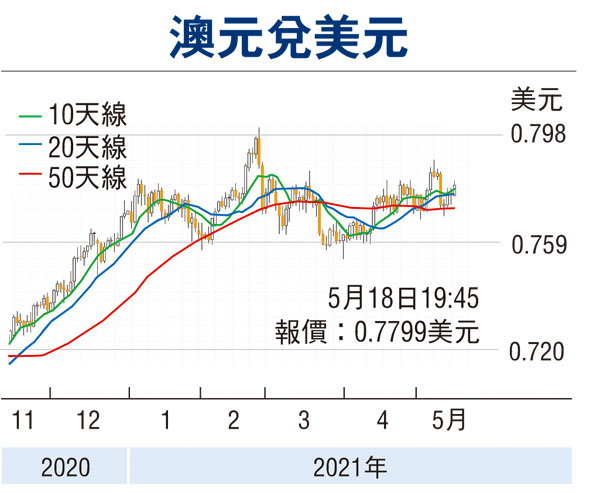 澳元上周四在76.90美仙附近獲得較大支持呈現反彈,迅速重上77美仙水平,本周二升幅擴大,一度向上逼近78.15美仙水平。澳洲央行本周二公布5月4日會議記錄,表示3月份失業率回落至5.6%是快於央行預期,認為未來數月的就業增長保持堅穩,預示澳洲統計局本周四公布的4月份就業數據可能維持偏強表現,失業率有機會進一步下降,澳元周二重上78美仙水平,有機會收復上周前段的跌幅。