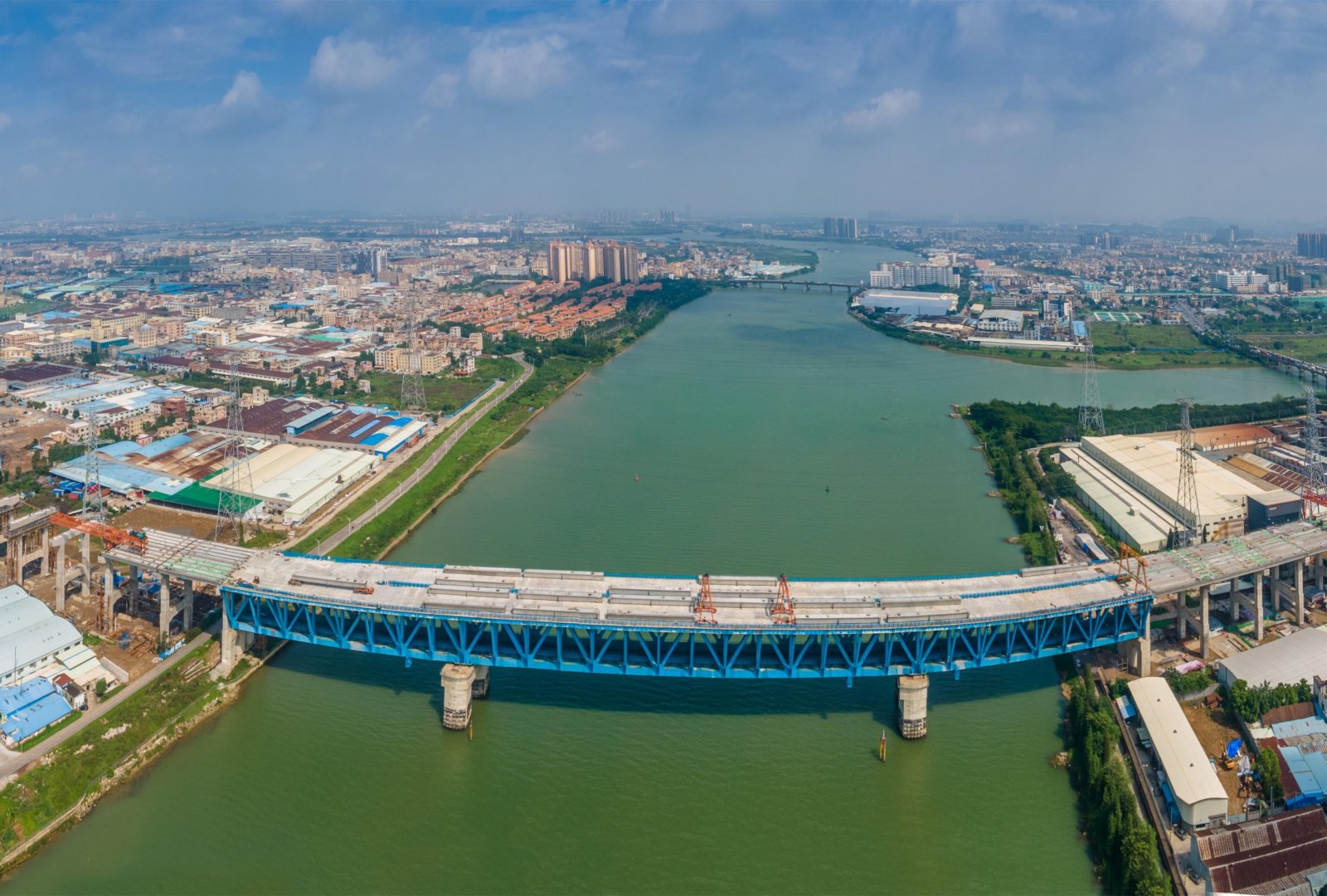 隨着有「亞洲第一跨」美譽的洪奇瀝水道特大橋合龍施工,南沙港鐵路建設進入收尾階段。而廣中江高速四期工程全長逾6公里,其中公鐵合建段3.23公里,上層為高速公路,下層為南沙港鐵路,其中跨越雞鴉河水道採用「平行弦連續鋼桁梁」結構,主跨175米,目前全線最後一塊現澆梁完成施工,為該項目實現今年底全線通車目標奠定了基礎。