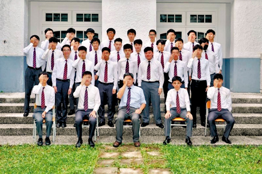 據了解,上述畢業照事件的涉事學校疑為拔萃男書院,當日香港文匯報向學校查詢時,校方確認照片攝於前年9月中,但辯稱相片並非正式班相,並稱「有同學選擇不這樣做(遮蓋右眼)」,惟未有交代老師何以參與其中。