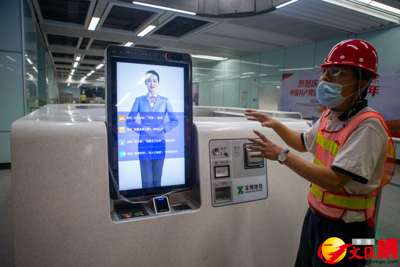登上列車,走到車頭,記者透過前擋玻璃直視前方就能看到列車軌道,視線毫無遮擋。工作人員進行無人駕駛測試時,以15公里/小時的速度緩行,測試階段工作人員需要將車頭位置的操作蓋板打開進行調試,調試結束後,儀錶盤將被覆蓋封閉。記者發現,20號線各站的虛擬服務員是一大亮點,顧客可通過人機對話辦理購票、諮詢等業務,也可通過人臉識別進站。