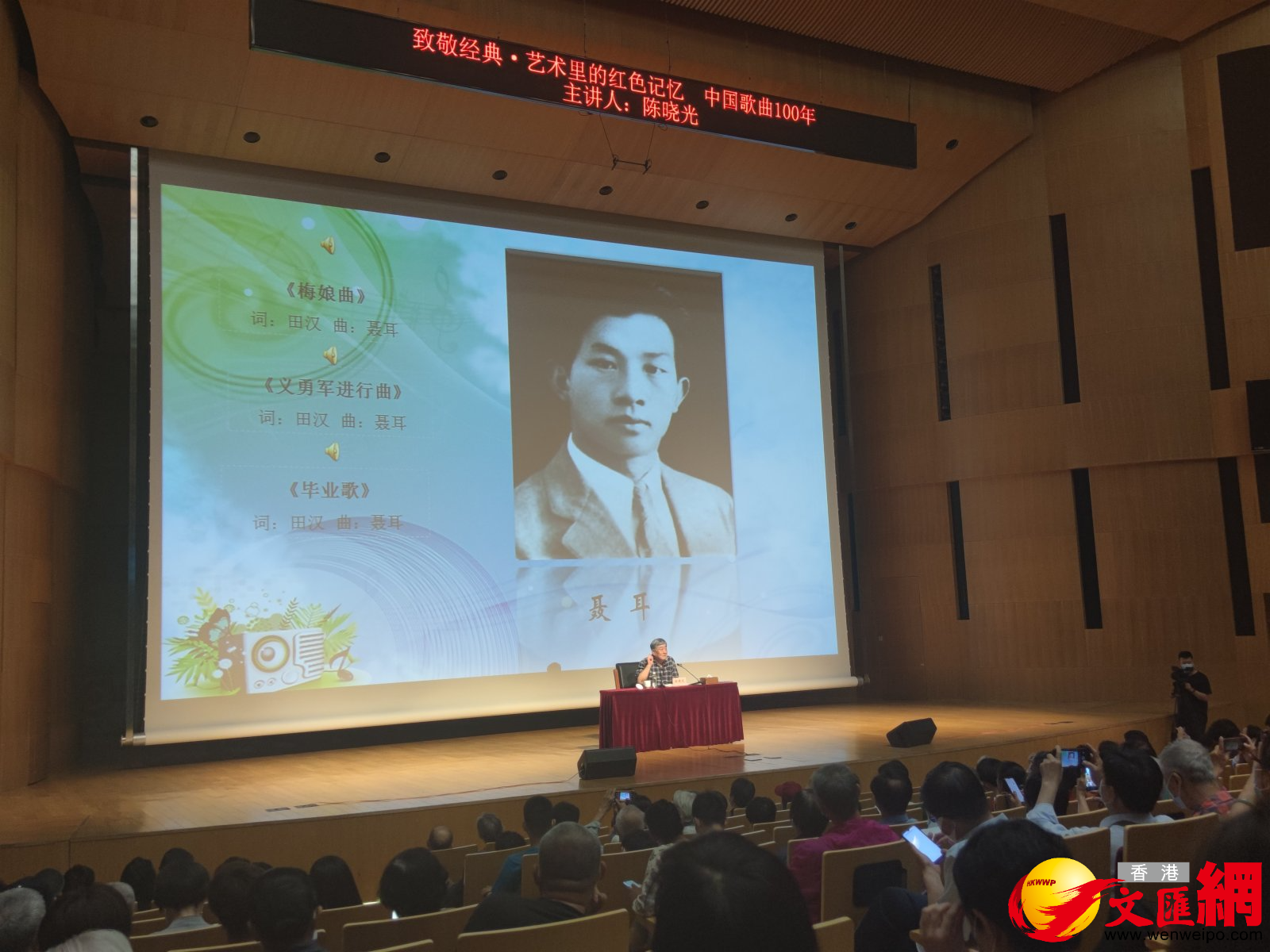 (香港文匯網記者 江鑫嫻)為慶祝中國共產黨成立100周年,國家圖書館藝術中心30日舉辦「致敬經典·藝術里的紅色記憶」系列活動第三場——《中國歌曲100年》公益講座。講座邀請到《在希望的田野上》《採蘑菇的小姑娘》的詞作者,著名詞作家、原文化部副部長陳曉光與讀者分享中國歌曲創作100多年來的發展歷程。陳曉光認為,歌曲是中國人不可或缺的精神食糧。中國近現代的歌曲與社會、歷史進程緊密結合,有着明顯的時代印跡。