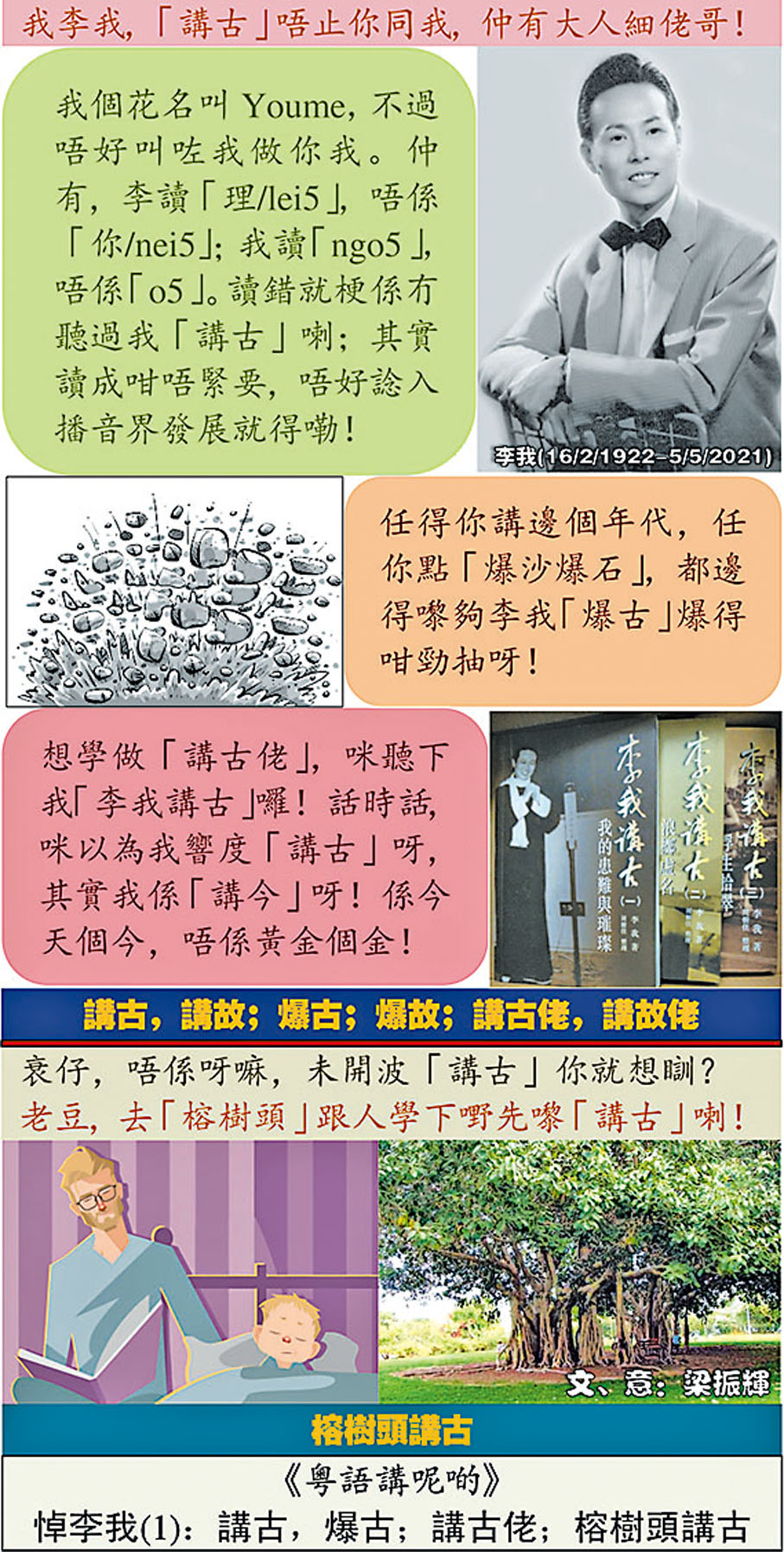 如果你問「我叔」,當「講古佬」又或播音員、藝人有什麼條件,想必他會說最起碼的要「咬字」清晰。然而,筆者「耳」之所及,真的有不少播音、演藝的從業員,尤其年輕一代,連「你」、「我」這兩個最常用字也發音不準——不是把「你/nei5」讀成「李/lei5」就是把「李」讀成「你」,「我/ngo5」則十常八九以其懶音「o5」代之,其他的都不用說了。對此之不屑,是筆者要求高,還是人們降低了要求?值得深思!