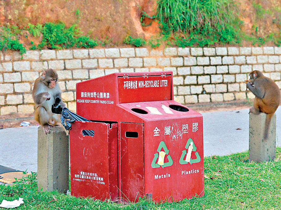 其次,郊野公園面對生態受損問題。資料提及,有環保團體拍攝到有野豬在郊野公園咬開了被棄置的黑色垃圾袋,分吃廢物,但這些廢物內可能有塑膠等物品,野生動物把它們誤當為食物吞食,容易引起窒息風險,甚至死亡危機。郊野公園的垃圾問題會間接損害野生動物的生態。